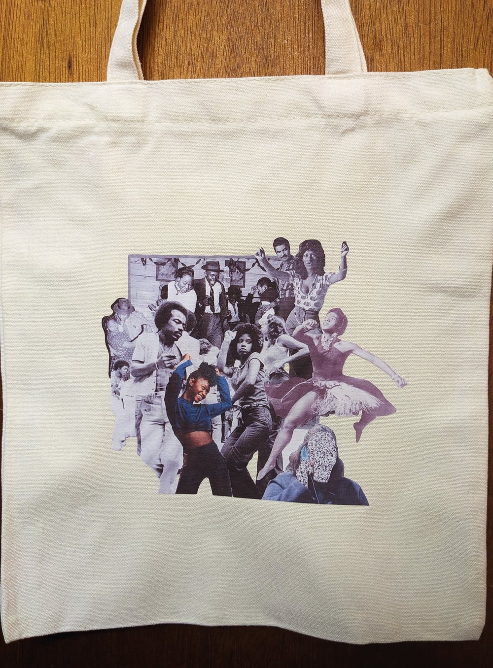 Heat-pressed image on a canvas bag with a zipper and inner pocket. This bag is 13.78 inches by 15.75 inches with 20-inch handles.